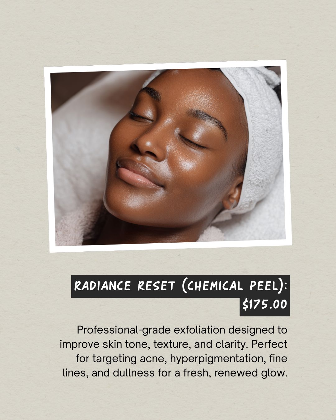 Chemical peels are a type of resurfacing treatment to bring a new glow and radiance to your complexion, quickly and effectively. The peel itself can be customized to target a variety of skin conditions—acne, brown spots, scarring, wrinkles, and even loose skin.